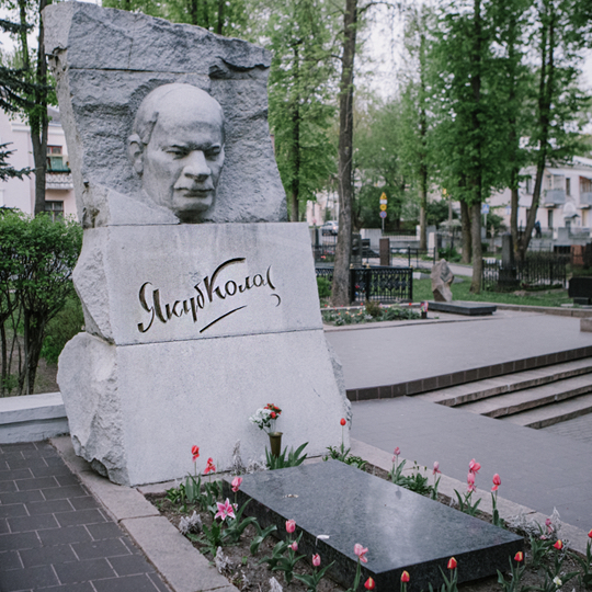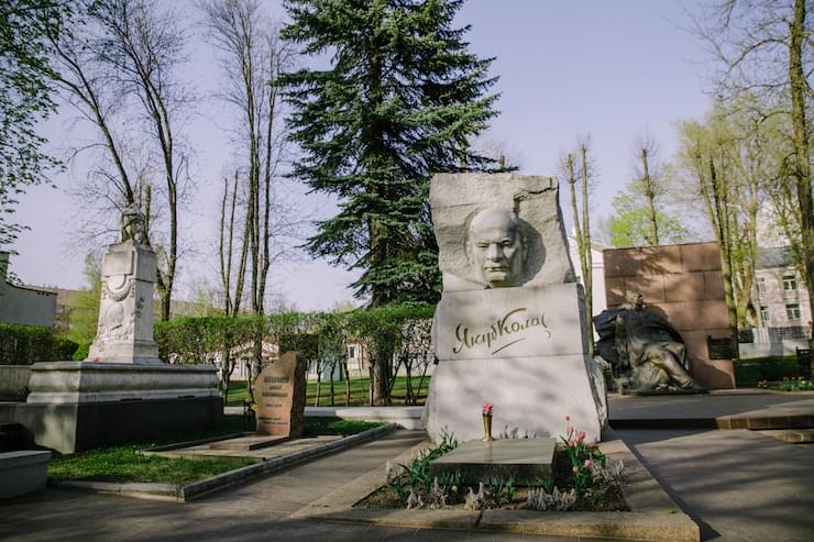 дзін з заснавальнікаў сучаснай беларускай літаратуры і літаратурнай мовы. Народны паэт Беларусі. Аўтар паэмаў «Новая зямля» і «Сымон-музыка», раману «На ростанях». Побач пахаваныя жонка Марыя Міцкевіч і сын Даніла Міцкевіч. Чытайце «20 нечаканых фактаў» пра Коласа на Свабодзе.