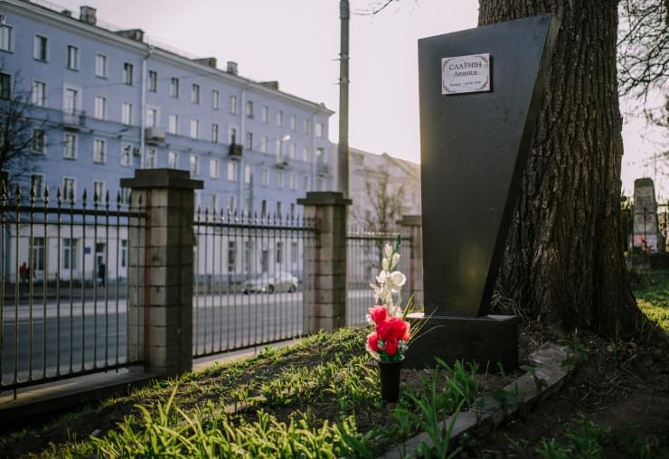 Каля тузіну сяброў Саюзу беларускай моладзі пахаваныя ў месцы, дзе стаіць помнік Леаніду Слаўніну. Яны сталі ахвярамі выбуху ў гарадзкім тэатры 22 чэрвеня 1943 году.
