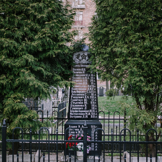 Братняя магіла маладых людзей, якія сталі ахвярамі пажару 1946 году падчас карнавалу ў менскім клюбе НКГБ.