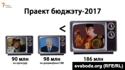 На СМІ даецца больш: 97,6 млн. У асноўным грошы пойдуць на тэлевізію і радыё — 80,5 млн, яшчэ 7 млн — на газэты і выдавецтвы.
