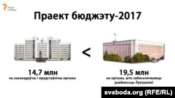 На органы кіраваньня і выканаўчую ўладу адведзена 101 млн, а на заканадаўчы і прадстаўнічы органы — толькі 14,7 млн. На органы, якія забясьпечваюць дзейнасьць Лукашэнкі, даецца больш: 19,48 млн.
