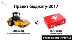 Але здароўе даражэйшае. На ахову здароўя агулам даецца 878,8 млн: 4,8 млн на санітарны нагляд, 14,4 млн на дастасоўныя дасьледаваньні, 424 млн на ўласна мэдычную дапамогу насельніцтву, астатнія 435 млн — на «іншыя пытаньні».