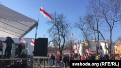 Сотні людзей, музыка, гандаль сувэнірамі, прыўзьняты настрой і паўсюль бел-чырвона-белыя сьцягі.