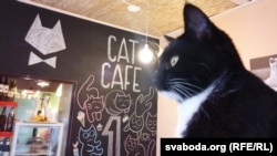 У Cat Café ў Вільні цяжка трапіць па выходных: гаспадары абмяжоўваць колькасьць наведнікаў, каб не турбаваць катоў.