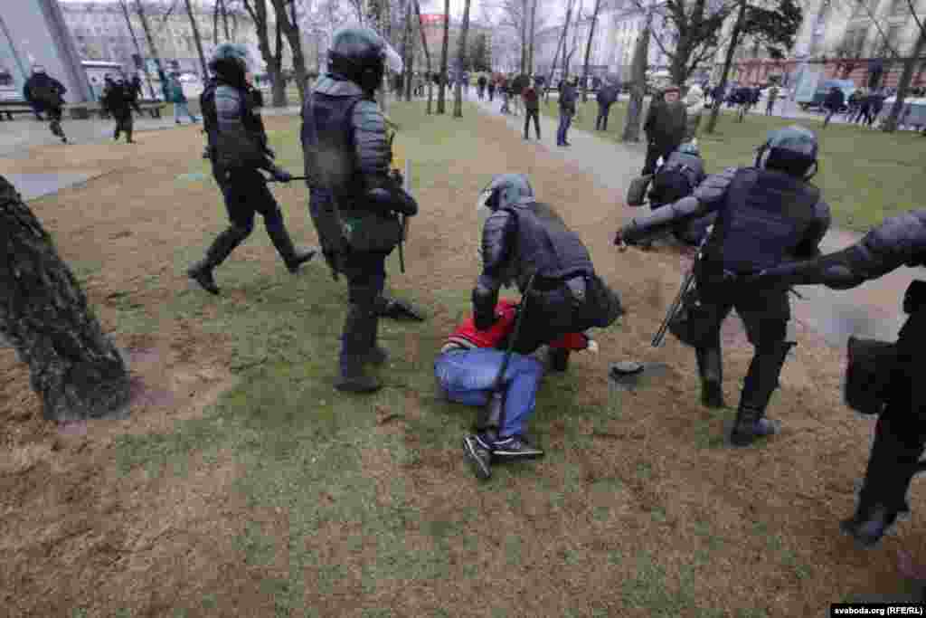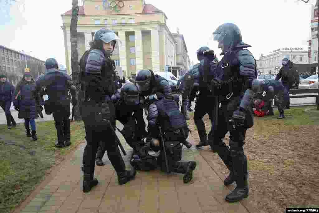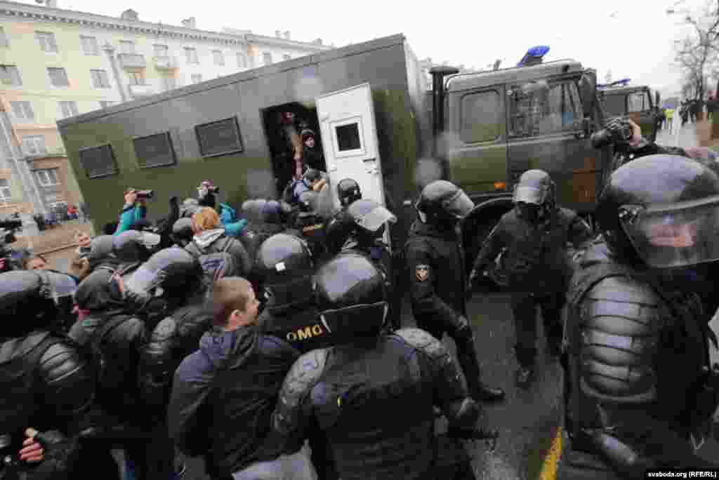 У Менску сілавыя структуры затрымалі сотні людзей, якія зьбіраліся сьвяткаваць Дзень Волі ў цэнтры сталіцы.
