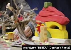 Эка-садок "ВЕТКА" нагадвае звычайны дзіцячы садок. Толькі дзеці сюды прыходзяць не на ўвесь дзень, а ня больш як на чатыры гадзіны. Адразу кідаецца ў вочы, што ў памяшканьні няма плястыкавых цацак — амаль усе драўляныя, шмат самаробных. Мэбля, іншыя рэчы — усё не зусім падобнае да звычайнай сучаснай абстаноўкі.