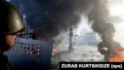 «Я зьвяртаюся да лідэраў апазыцыі. Калі вы сапраўды патрыёты і хочаце захаваць нашу дзяржаву, праявіце палітычную сталасьць і мудрасьць. Гэта не гульня ў вайну. Тут рэальныя ахвяры — жыўцом гараць міліцыянты, экстрэмісты адстрэльваюць людзей. Яны хаваюцца за сьпінамі дзяцей і жанчын, ім патрэбны хаос. На крыві не пабудаваць магутную дзяржаву.
