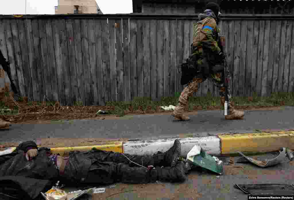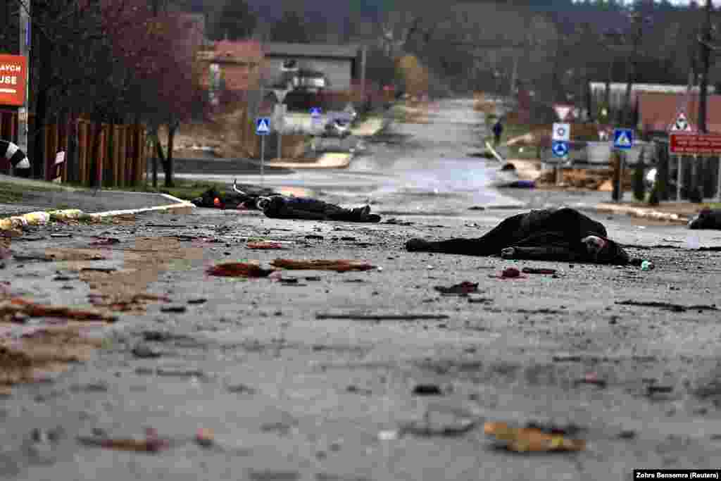 На шакавальных кадрах, зробленых агенцтвамі Reuters, AFP і іншымі мэдыя, бачныя целы загінулых грамадзянскіх, якімі ўсеяныя вуліцы Бучы — раней густанаселенага гораду-сатэліта ўкраінскай сталіцы. У некаторых загінуўшых зьвязаныя рукі.