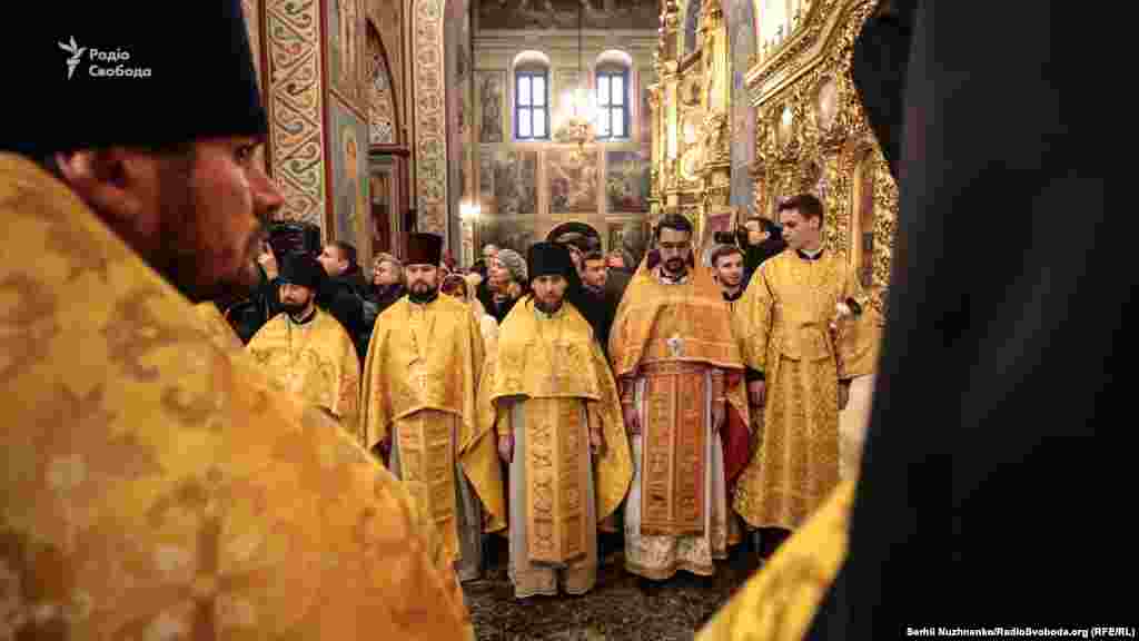 16 сьнежня раніцай новаабраны першаярарх Праваслаўнай царквы Ўкраіны мітрапаліт Эпіфаній правёў першую літургію ў Міхайлаўскім саборы.