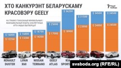 Радыё Свабода параўнала: кошт умоўна беларускага аўтамабіля ня толькі параўнальны з мадэлямі ўсясьветна вядомых брэндаў, якія пры гэтым яшчэ патрабуюць мытнага афармленьня, але ў шэрагу выпадкаў іх пераўзыходзяць.