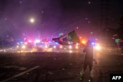 Пры гэтым начальнік паліцыі Джым Макдонэл заявіў на брыфінгу для мэдыя ў нядзелю ўвечары, што пратэсты выходзяць з-пад кантролю, піша агенцтва Reuters.