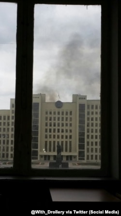 Відавочцы паведамілі Свабодзе пра чорны дым над менскім Домам ураду, што на плошчы Незалежнасьці. МНС пацьвердзіла карэспандэнту Свабоды: