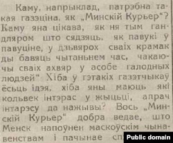«Грамадзяне! Вучыцеся чытаць па-беларуску. Гэта ў вашых інтарэсах. Годзі выстаўляць сябе на сьмех перад культурнымі людзьмі!»