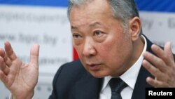 Пасьля перамоваў 15 красавіка зь лідэрамі апазыцыі Бакіеў падпісаў прашэньне аб адстаўцы ў абмен на гарантыі бясьпекі яму і сям’і ды быў вывезены ў Казахстан па ўказаньні Назарбаева. 19-га ён быў ужо ў Беларусі, дзе атрымаў палітычны прытулак і заявіў, што не прызнае адстаўкі. Бакіеў захоўваў права працягваць называць сябе прэзыдэнтам ня так доўга, як Януковіч: яго адхілілі ад улады дэкрэтам часовага ўраду 27 красавіка.