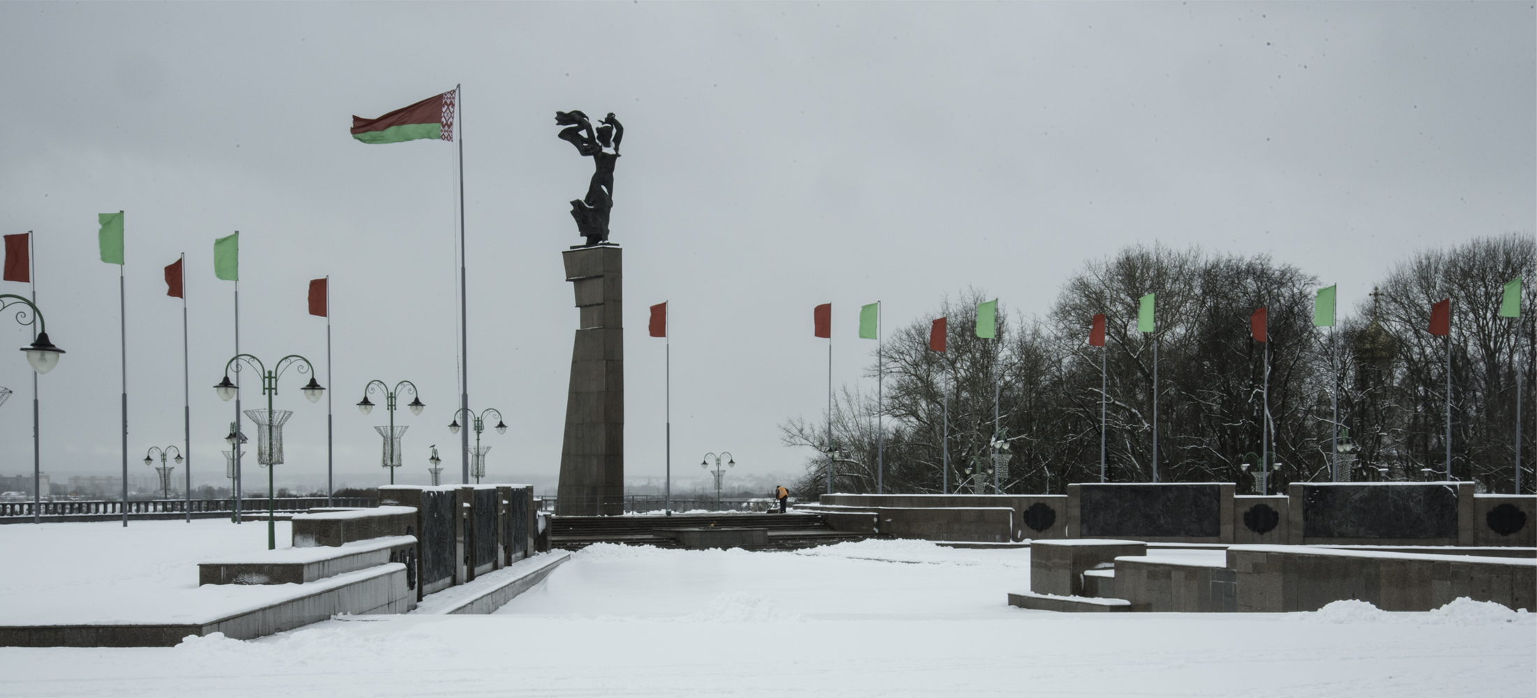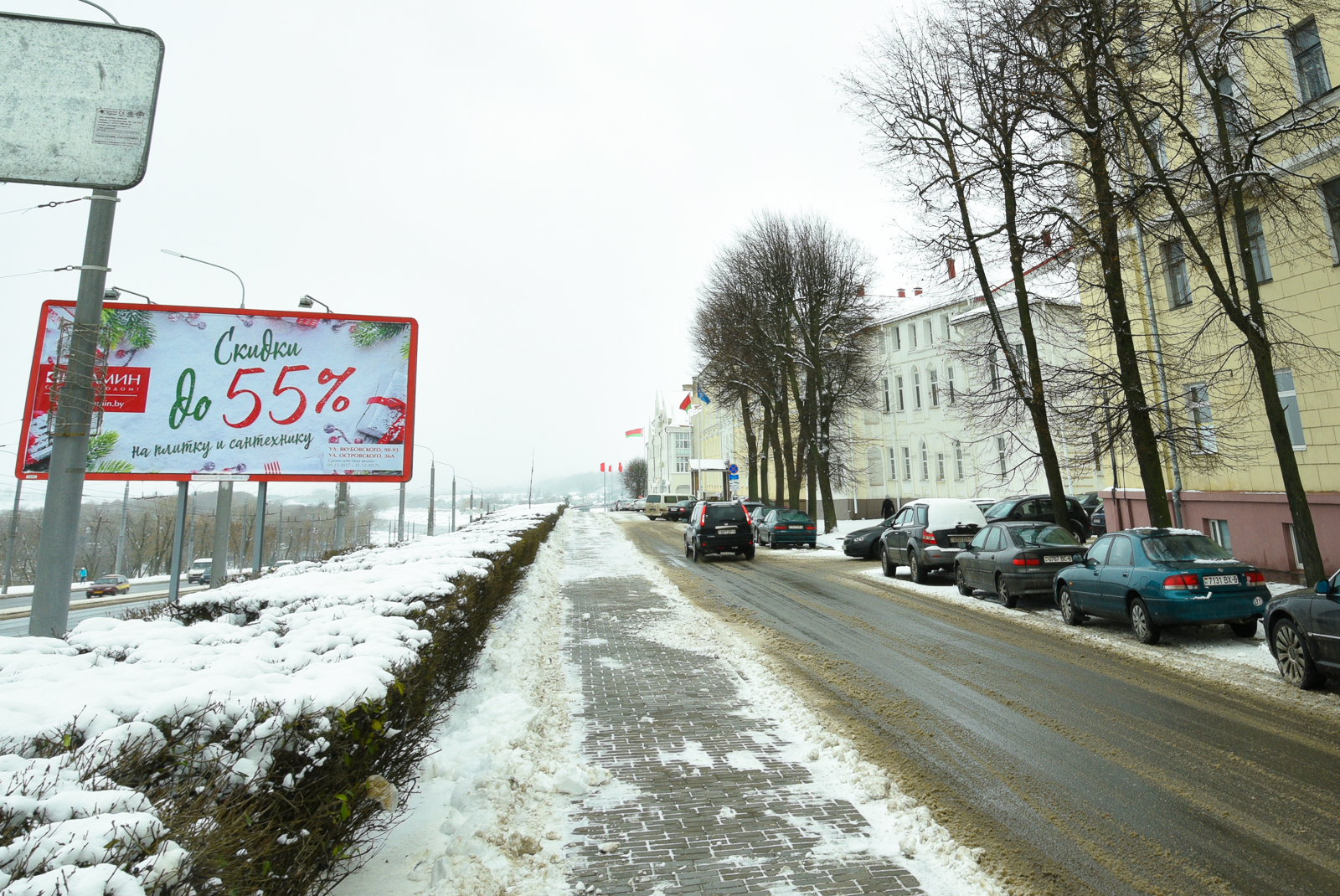 У глыбіні здымка відаць Петрапаўлаўская царква са званіцай (раён гасьцініцы «Турыст»). Драўляная царква вядомая з 1633 году. Мураваную ўзьвялі ў 1769 годзе. Як і Траецкую, Петрапаўлаўскую зачынілі бальшавікі ў 1930-х гадах. Пашкоджаную ў вайну сьвятыню разбурылі ў 1950-я гады.