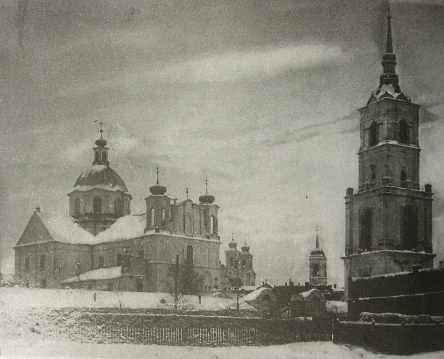 У сярэдзіне фатаздымку Ўсьпенская царква. Гэта ўзор магілёўскай школы дойлідзтва 17–18 стагодзьдзя. Рэшткі сьвятыні прастаялі да 1960–61 году. На яе месцы цяпер адміністрацыйны будынак.