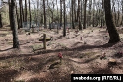 «Я пару гадоў таму адзін тут ішоў праз гэтыя зарасьці. Разгубіўся трохі. Выходжу з-за сасны — а на мяне дзед глядзіць! У мяне ажно сьлёзы з вачэй пацяклі», — Аляксандар працірае на крыжы партрэт дзеда. Фотаздымак зрабіў ён сам за некалькі месяцаў да сьмерці Фёдара Самуілавіча.
