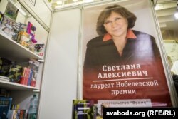 4. Толькі на стэндзе расейскага выдавецтва «Время» прадстаўленыя кнігі мінулагодняй ляўрэаткі Нобэлеўскай прэміі па літаратуры, беларускай пісьменьніцы Сьвятланы Алексіевіч. Дарэчы, «Время» выдала і раман Віктара Марціновіча «Возера радасьці» па-расейску.