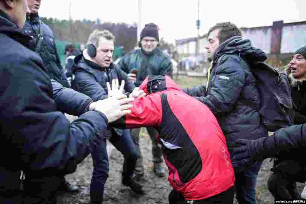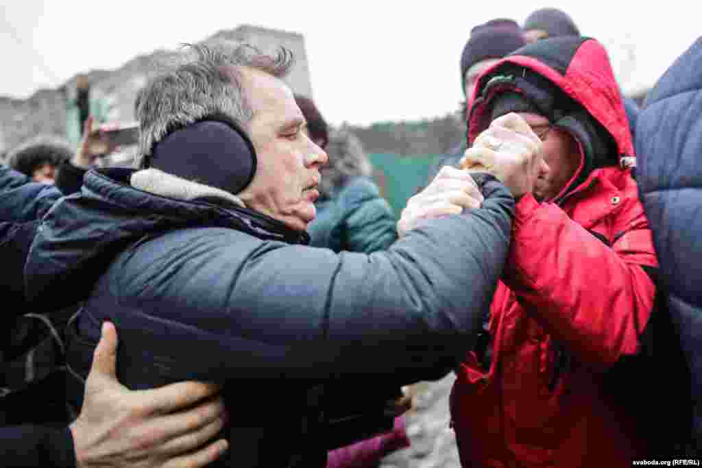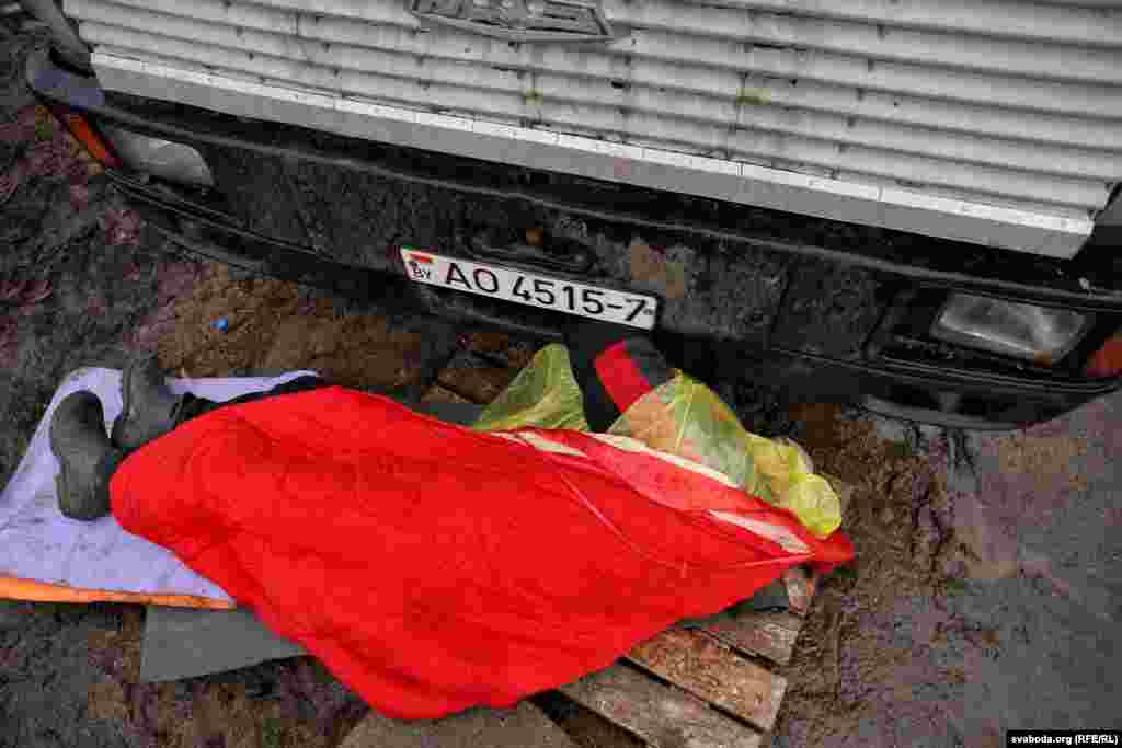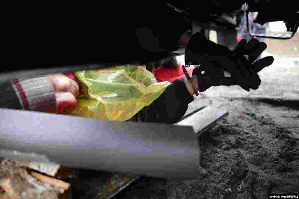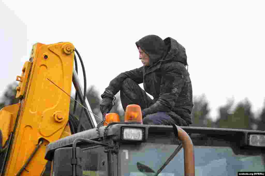 Абаронцы Курапатаў блякуюць будаўнічую тэхніку сабой. Фотарэпартаж