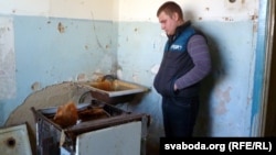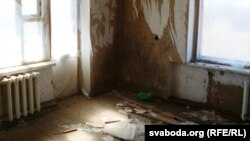 Цыратай закрытыя вокны і ў яшчэ адным доме паблізу, дзе таксама ёсьць вольныя кватэры. Яны меншыя — двухпакаёвыя. І выгодаў меней — ацяпленьне не цэнтральнае, а пячное. Аднак выглядаюць кватэры такімі ж закінутымі: печка даўно развалілася, падлога прагніла, дый уся кватэра — у гнятліва неахайным стане.