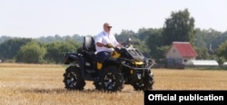 Таксама 18 жніўня Лукашэнка пракаціўся на квадрацыкле (паводле зьвестак «Нашай Нівы», квадрацыкл канадзка-амэрыканскай вытворчасьці) і праехаўся па полі ААТ «Александрыя» з сынам Мікалем на камбайне з сэрыі «Палесьсе».