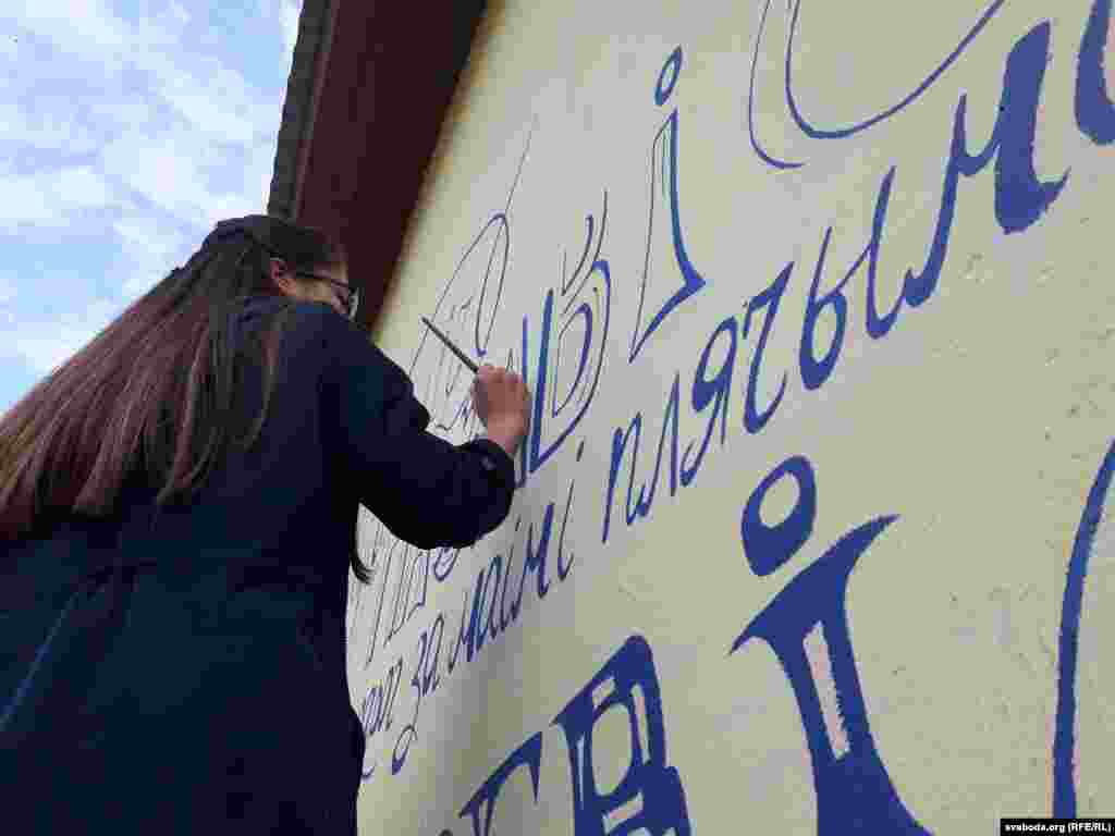 Мастачка Юлія Раткіна размалявала сьцяну трансфарматарнай падстанцыі фрагмэнтам зь верша Яўгеніі Янішчыц.