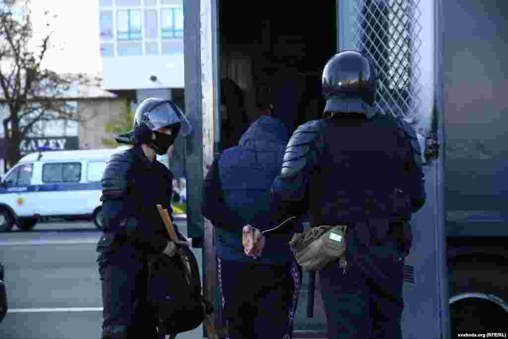 Адразу зьяўляюцца аўтазакі з АМАПам, які пачынае затрымліваць людзей