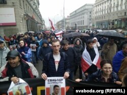 Статкевіч прапанаваў прайсьці маршам ад Кастрычніцкай да плошчы Незалежнасьці. Мітынгоўцы пагадзіліся