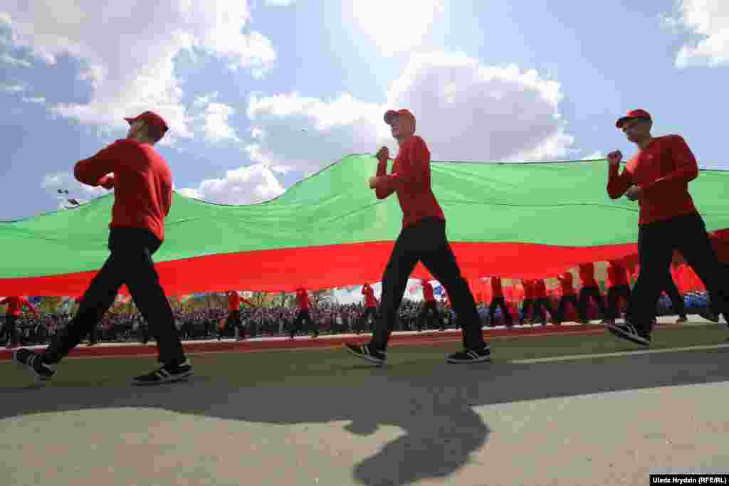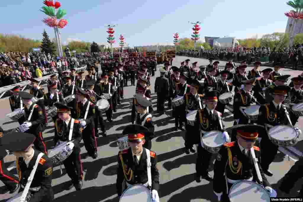 Парад у Менску. Некаторыя наведнікі ў масках. Фотагалерэя