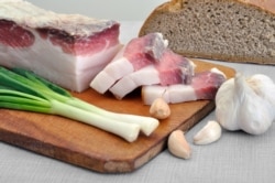 - Зважаем на дамаганьні нацыянальна сьведамага госьця: Дай сала хлеб даесьці!