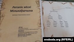 А вось мы ў іншай клясе. Спадарыня Тацяна распавядае, што экспазыцыя прысьвечаная гісторыі самой школы ў Мількаўшчыне.