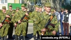 «Учора езьдзілі на стрэльбішча. Там стралялі. Узгадаць маладосьць, вядома ж, цікава», — казаў журналісту адзін з вайскоўцаў пасьля прыняцьця прысягі.