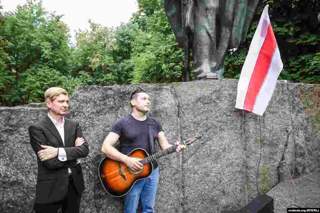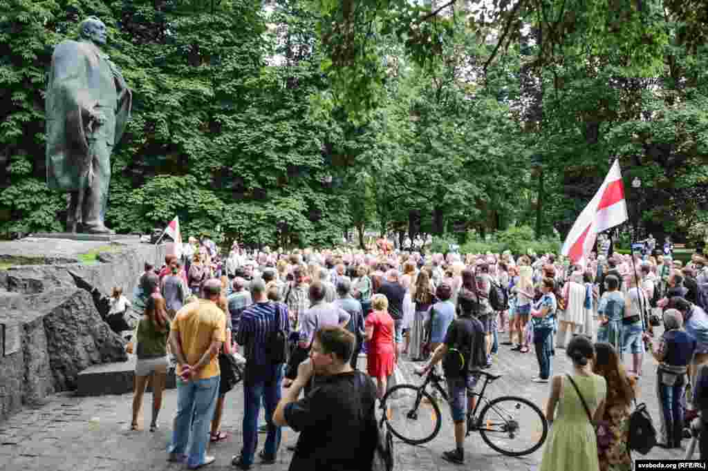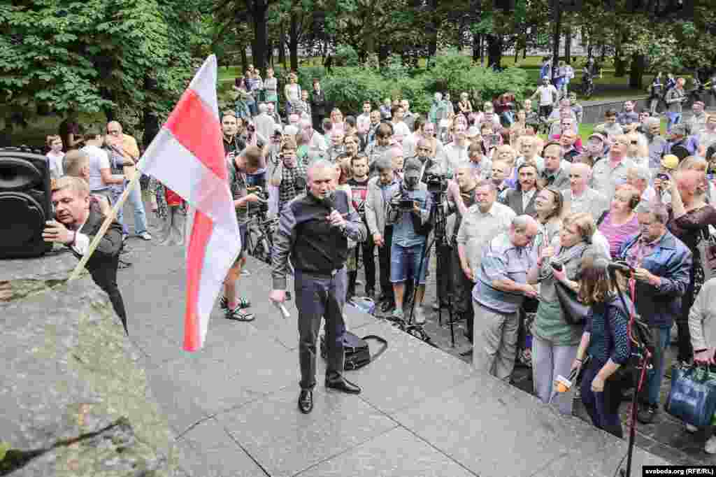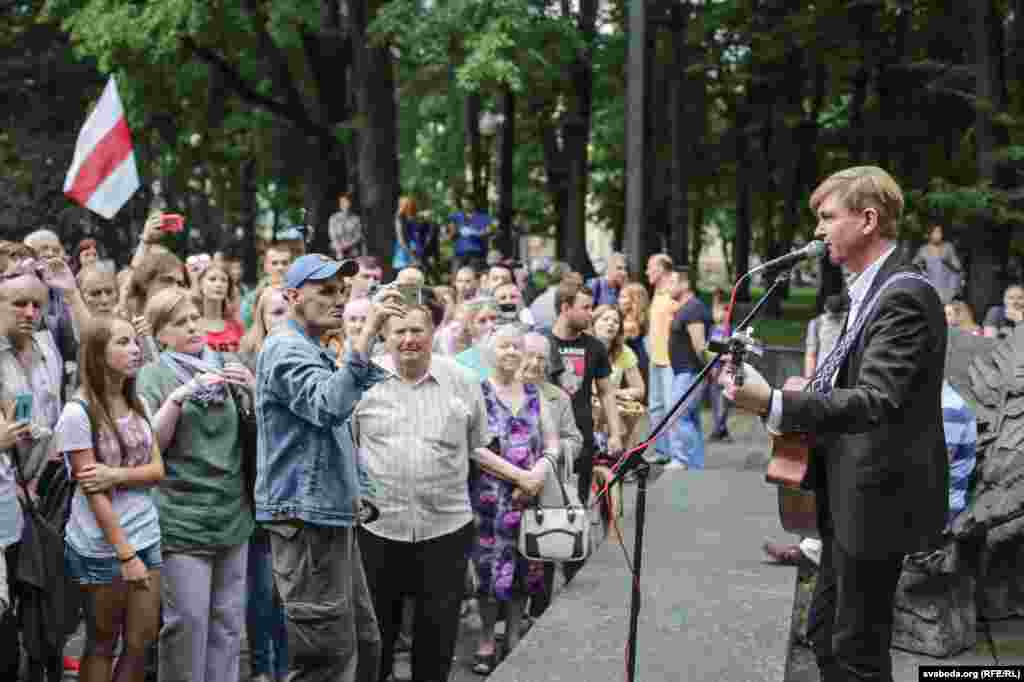 Някляеў чытае вершы ў сквэры імя Купалы