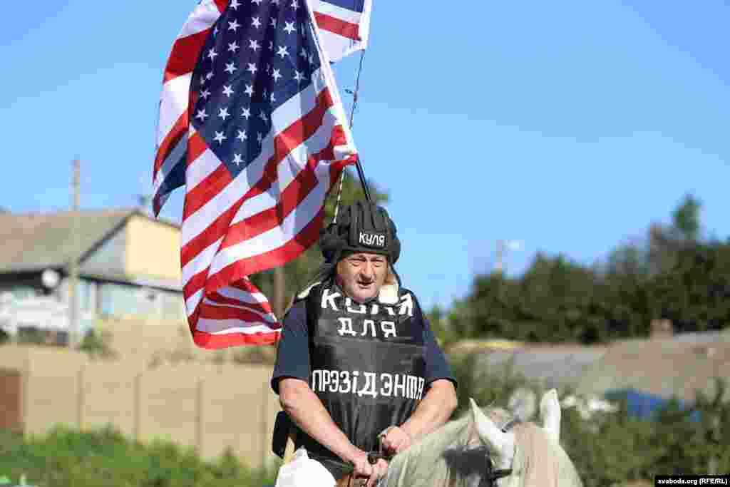 Уладзімер Падгол быў у бронекамізэльцы і танкісцкім шаломе з надпісам «Куля для прэзыдэнта», Алесь Таўстыка — у камуфляжнай камізэльцы і касцы.