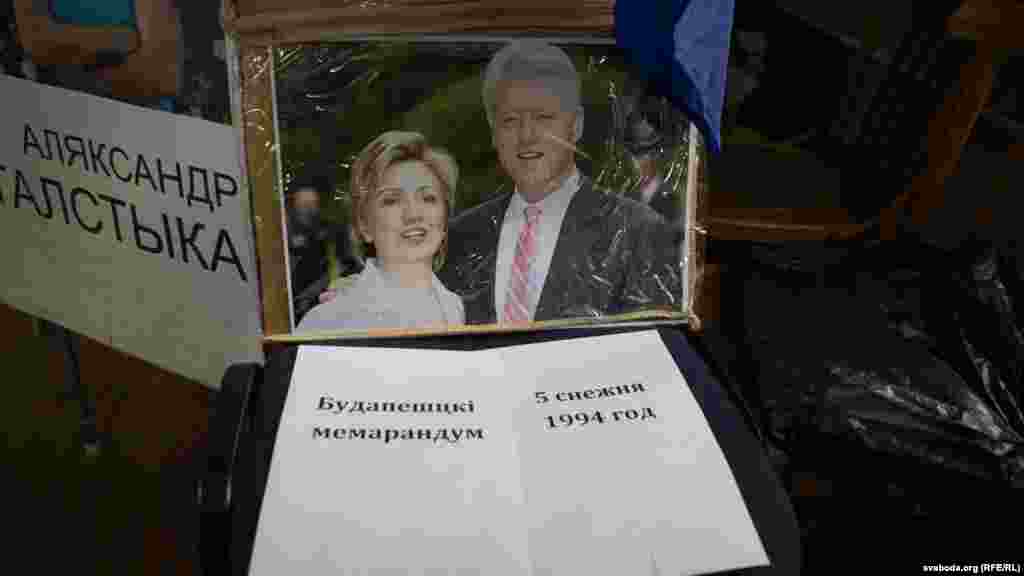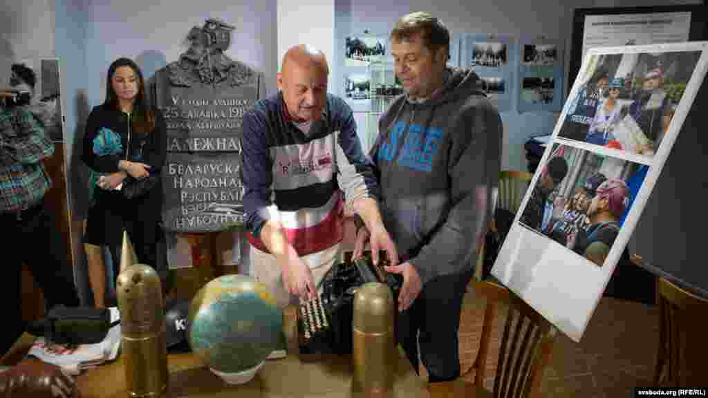 У сядзібе БНФ Уладзімер Падгол ды Аляксей Таўстыка прадэманстравалі рэчы, якія выкарыстоўваліся на пікетах падчас выбарчай кампаніі ў Палату прадстаўнікоў.