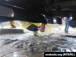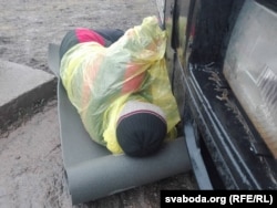 Актывіст Пальчэўскі ляжыць прыкаваны да МАЗа.