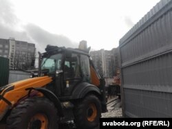 Рабочыя сьцягнулі яго з трактара і паставілі дадатковую мэталічную сетку, але Зьміцер застаўся на пляцоўцы. Ён узьлез на дах трактара і сеў там. Дашкевіч прамаўляе з трактара. Ён заклікае будаўнікоў не выконваць злачынныя загады.