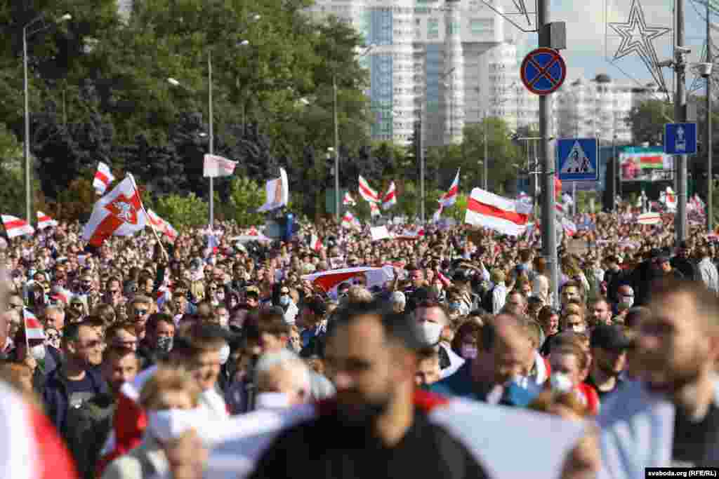 У Менску і іншых гарадах Беларусі пятую нядзелю запар праходзяць маштабныя маршы пратэсты. Сёньня ён мае назву «Марш герояў».