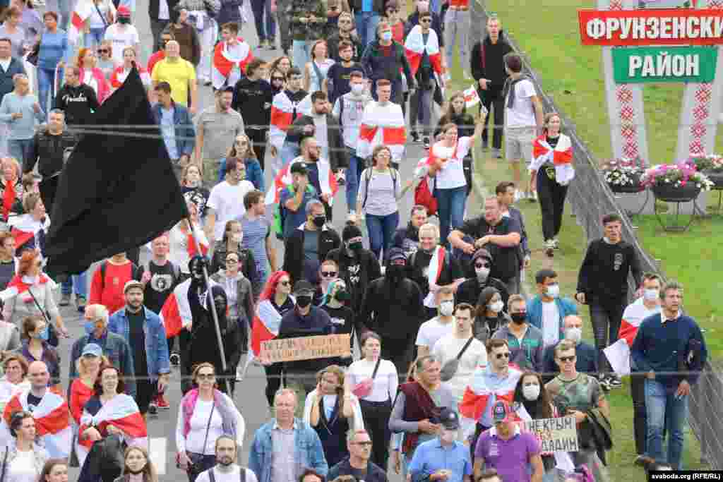 Belarus - Opposition supporters take part in a rally against police brutality following protests to reject the presidential election results in Minsk, 13sep2020