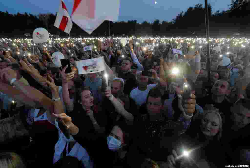 Увечары 30 ліпеня ў менскім парку Дружбы народаў прайшоў мітынг-канцэрт у падтрымку кандыдаткі ў прэзыдэнты Сьвятланы Ціханоўскай. На дазволенай перадвыбарчай акцыі, паводле падлікаў валянтэрскай службы «Вясна», з 17:30 да 20:30 пабывалі прынамсі 63 тысячы чалавек.
