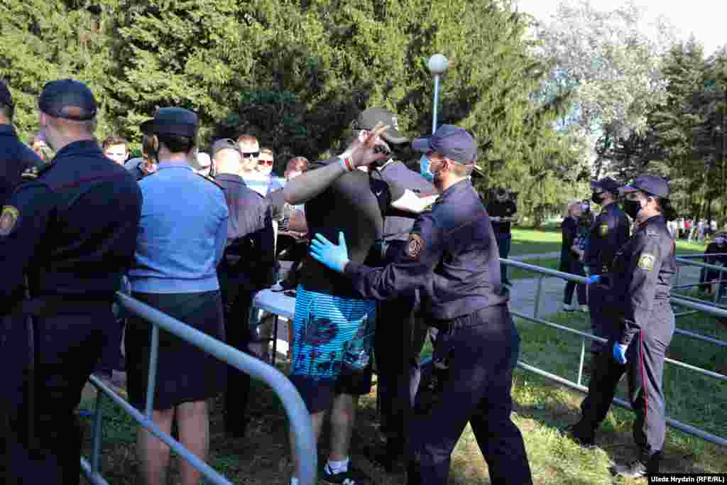 Людзі стаялі таксама за агароджай, не праходзячы праз прапускныя пункты. З боку вуліцы Карастаянавай выстраіліся чэргі даўжынёй каля 100 мэтраў.