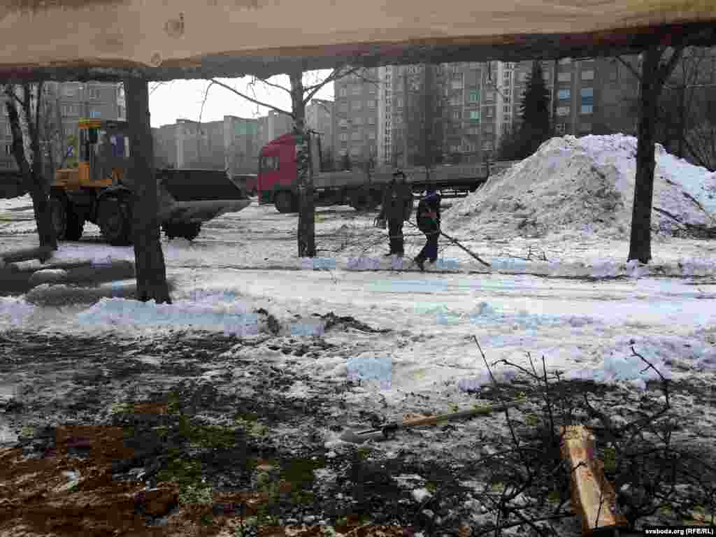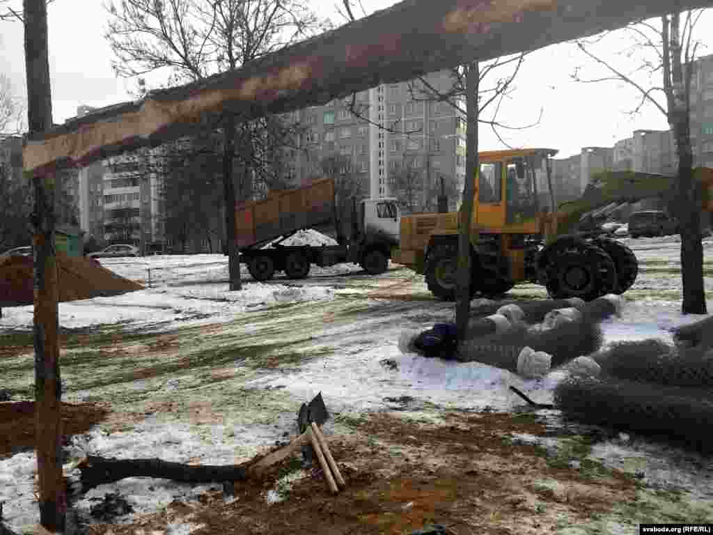 Рашэньне аб гэтай будоўлі, як кажуць мясцовыя жыхары, было прынята ў студзені гэтага году Менгарвыканкамам. Учора ўвечары зьявіліся будаўнічыя машыны, і ад ранку пачала актыўна разгортвацца будаўнічая пляцоўка — высякаюцца дрэвы, робяцца сьвідравіны, усталёўваецца агароджа, выгружаюцца будматэрыялы.