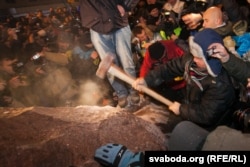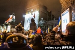 У нядзелю мітынгоўцы зьнесьлі помнік Леніну на бульвары Шаўчэнкі ў Кіеве.