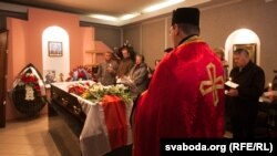 Вельмі шмат людзей. Многія трымаюць сьвечкі. Рытуальная заля на Альшэўскага поўная. Сябры, знаёмыя, паплечнікі. Уніяцкія сьвятары правялі памінальную службу. А 12-ай пачнецца грамадзянская паніхіда.