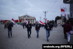 Зьміцер Дашкевіч кажа, што ў акцыі бярэ ўдзел каля сотні чалавек, больш за 50 чалавек са сьцягамі стаяць уздоўж праспэкту да плошчы Незалежнасьці.