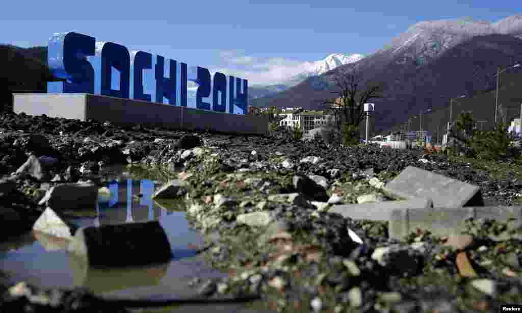 Працы на многіх алімпійскіх аб'ектах у Сочы, дзе 7 лютага пачнуцца Зімовыя Алімпійскія гульні, незавершаныя. Рабочыя тэрмінова прыбіраюць будаўнічы друз, пракладваюць дарогі і нават фарбуюць траўнікі ў зялёны колер