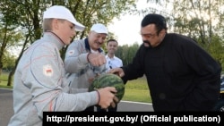Кіраўнік Беларусі Аляксандр Лукашэнка правёў нефармальную сустрэчу зь вядомым амэрыканскім кінаакторам Стывэнам Сыгалам.