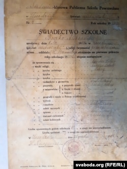 — Гэты атэстат я знайшоў на гарышчы гарадзейскай хаты, дзе жыў Надсан і дзе была школа. За польскім часам кожны год выдавалі такое пасьведчаньне. Гэтая папера вельмі брудная была, ужо развальвалася. Аляксандар Надсан яшчэ перад сьмерцю прызнаў сваю хату. Па здымку.