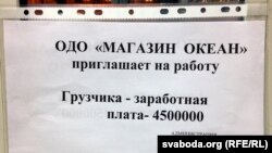 У краму «Акіян», што паблізу плошчы Перамогі ў Менску, патрабуецца грузчык. За цяжкую фізычную працу абяцаюць 4,5 мільёна.