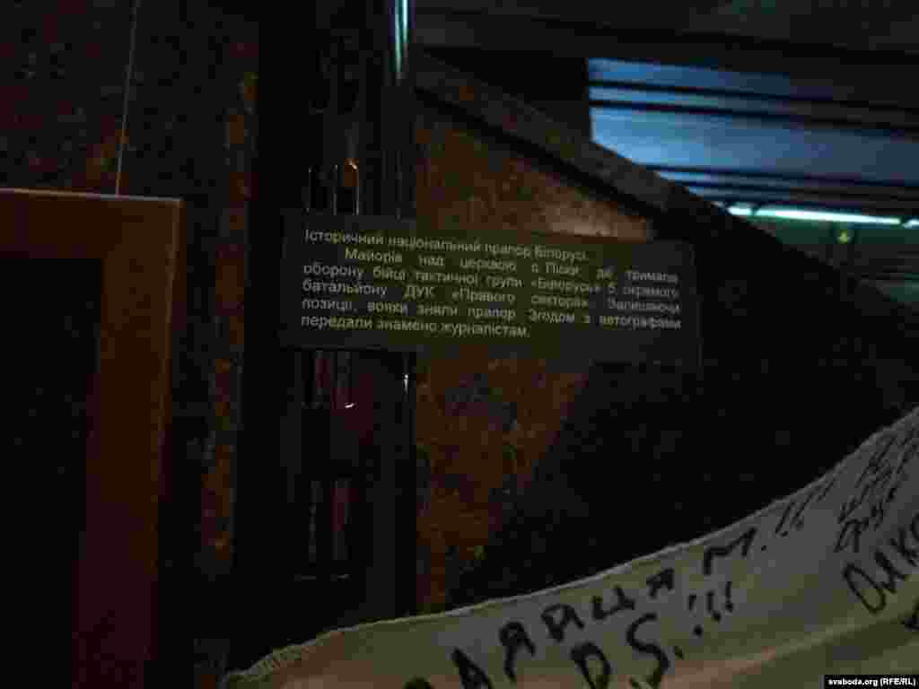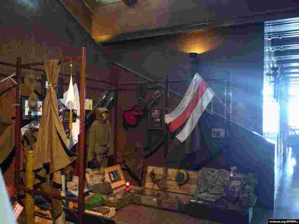 У экспазыцыі, прысьвечанай вайне на ўсходзе Ўкраіны, знаходзяцца рэчы загінулых жаўнэраў тактычнай групы «Беларусь», сярод якіх бронекамізэлька з крывёй Віталя Ціліжэнкі. Ёсьць тут і бел-чырвона-белы сьцяг, які лунаў над царквой вёскі Пяскі.